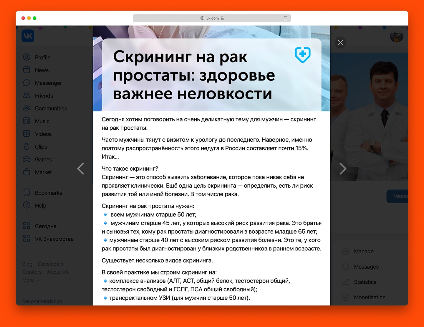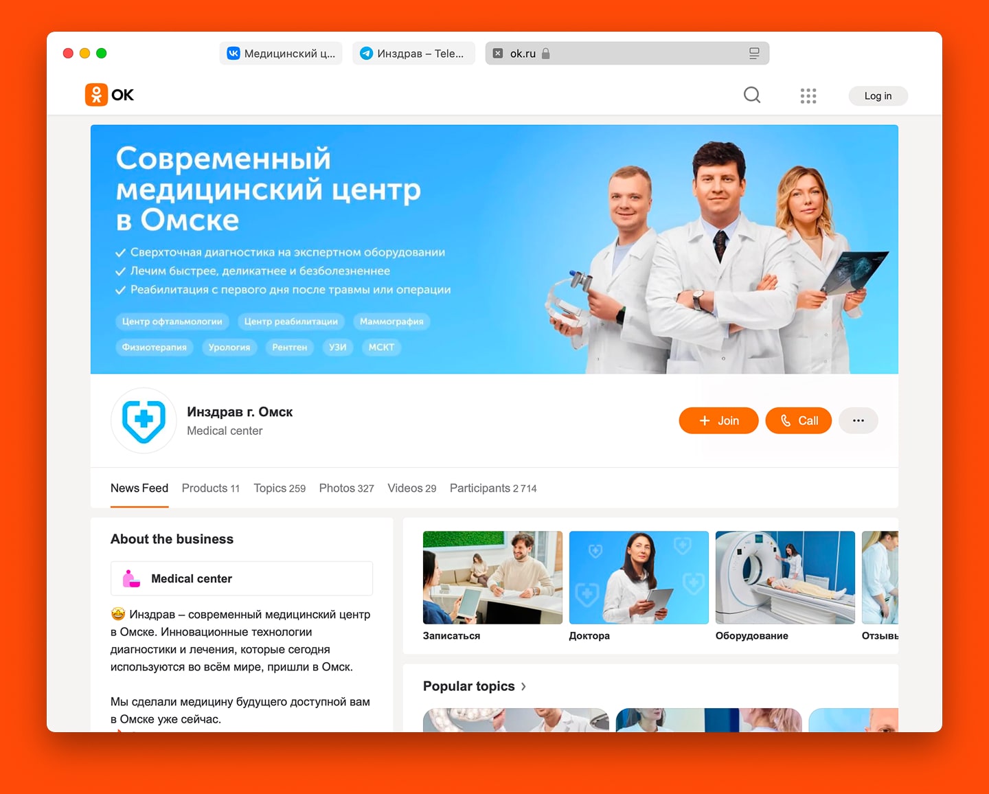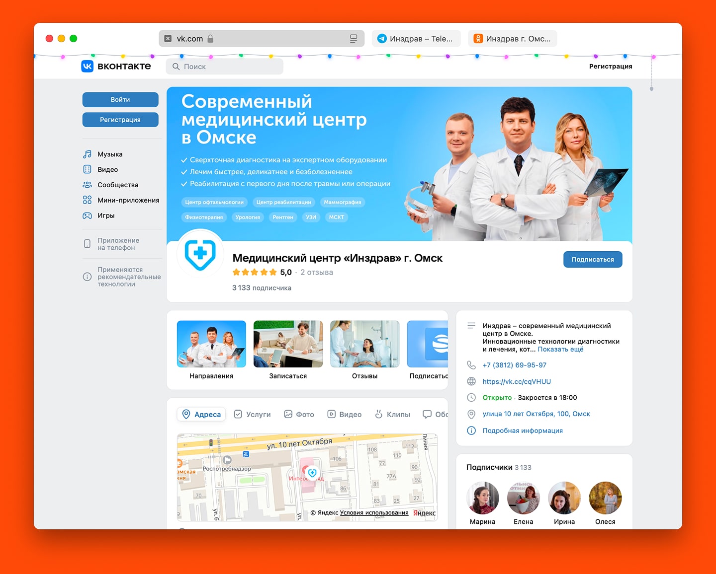 Мы сразу завели страницы клиники в соцсетях, упор делали на Вконтакте и Одноклассники — у клиники много направлений для людей постарше — все, что касается замены суставов и реабилитации.