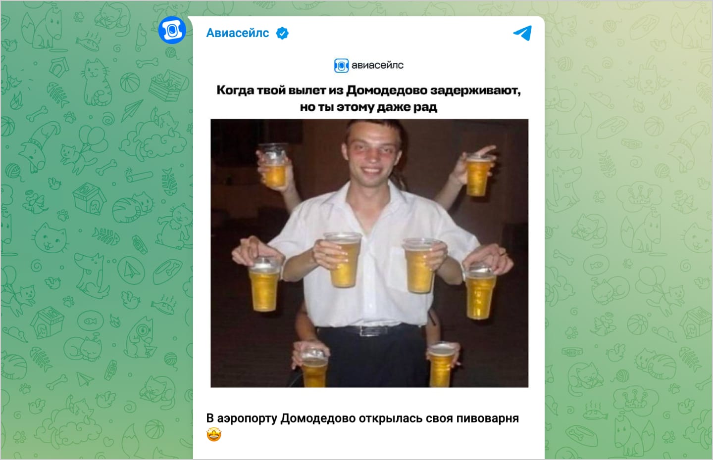 Во-вторых, ToV может снижать косты на рекламу за счёт вирусности и цитируемости. Обычно так происходит с брендами вроде того же Aviasales или Красное и Белое: им можно даже не вкладываться в рекламу — чуть ли не каждый пост получает сотни репостов в тематические паблики. Как результат — контент видят десятки тысяч человек.