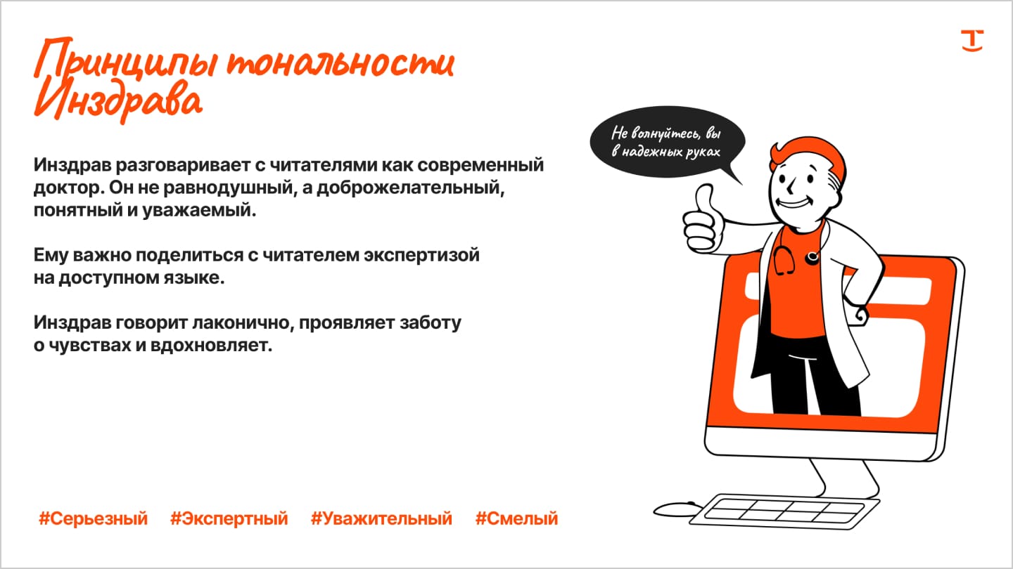 О страшных последствиях болезней. Вернее говорить о них он может, но тактично и с заботой — бренд не запугивает аудиторию натуралистическими подробностями. А ещё он не критикует конкурентов и не обсуждает политику. - Потому что…