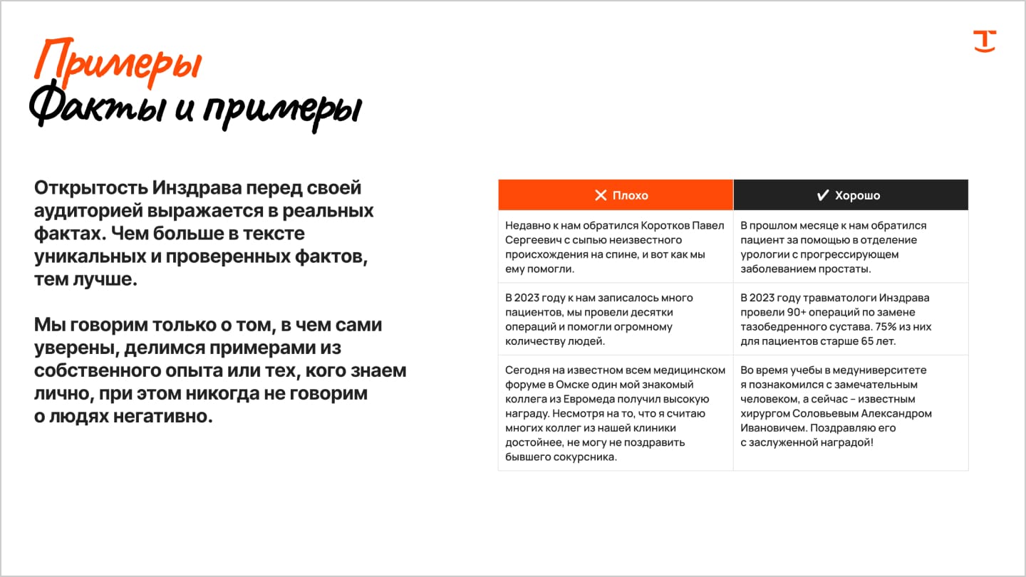 Доказательной медицине. Эмпатично, понятно, с примерами. А ещё рассказывать о том, как доктора клиники проводят сложные операции и каждый день помогают людям. - Не любит говорить…