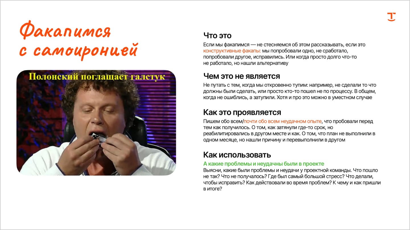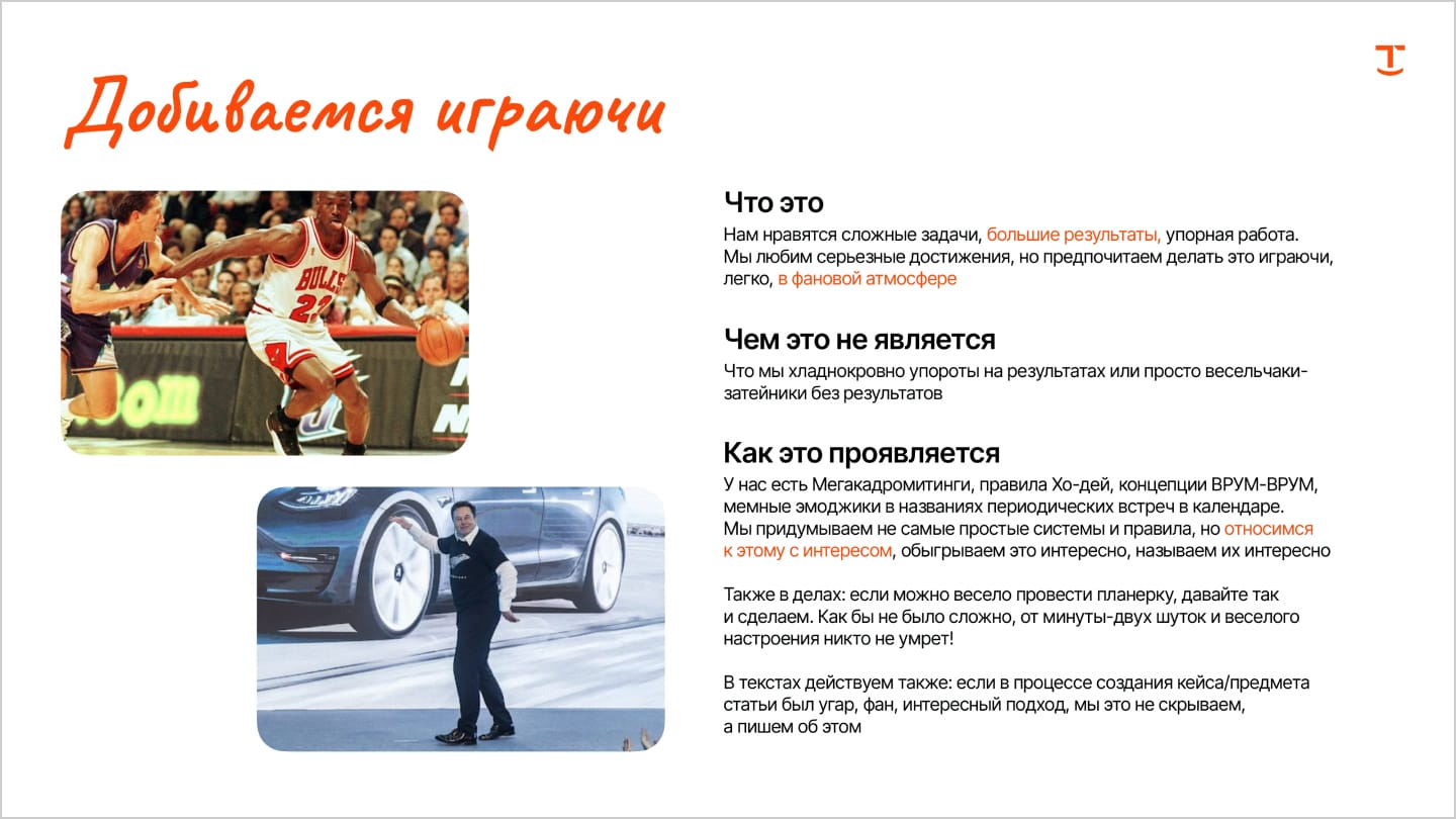 В этом случае ToV внедряют, пользуются пару месяцев, а потом забивают. Потому что внедрение ToV, как и любое нововведение, — всегда про боль и сопротивление. Если сотрудники лет 5-10 общаются и делают работу одним образом, менять это сложно. Так что без человека, который всё внедрит и будет контролировать пока это не станет на уровне ДНК компании, не обойтись.